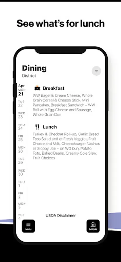 Within the dining section, you’ll find an easy to navigate, weekly menu, sorted by day and meal type.