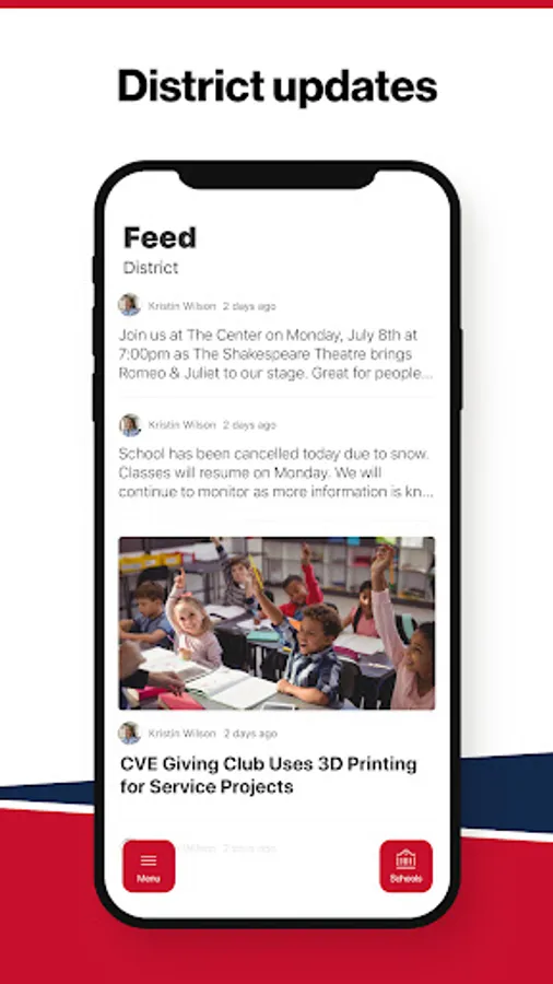 In the Live Feed is where you'll find updates from the administration about what's going on in the district right now. Whether that's celebrating a student's success, or reminding you about an upcoming deadline.