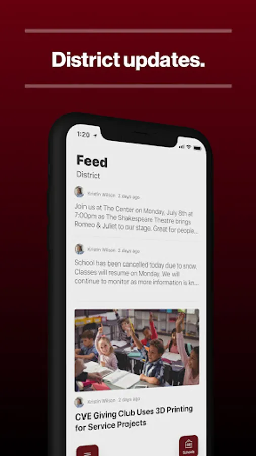 In the Live Feed is where you'll find updates from the administration about what's going on in the district right now. Whether that's celebrating a student's success, or reminding you about an upcoming deadline.