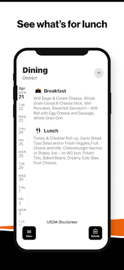 Within the dining section, you’ll find an easy to navigate, weekly menu, sorted by day and meal type.