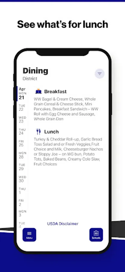 Within the dining section, you’ll find an easy to navigate, weekly menu, sorted by day and meal type.