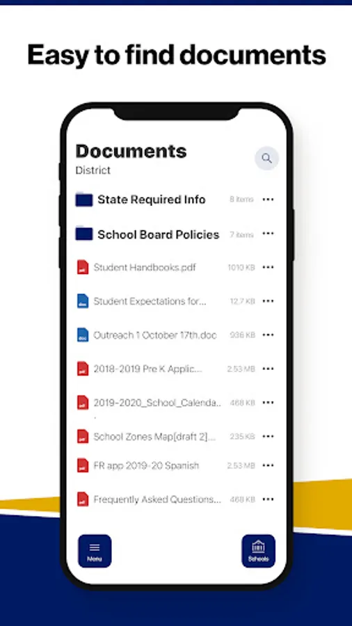The event section shows a list of events throughout the district. Users can add an event to their calendar to share the event with friends and family with one tap.