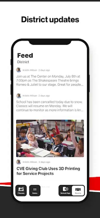 In the Live Feed is where you'll find updates from the administration about what's going on in the district right now. Whether that's celebrating a student's success, or reminding you about an upcoming deadline.