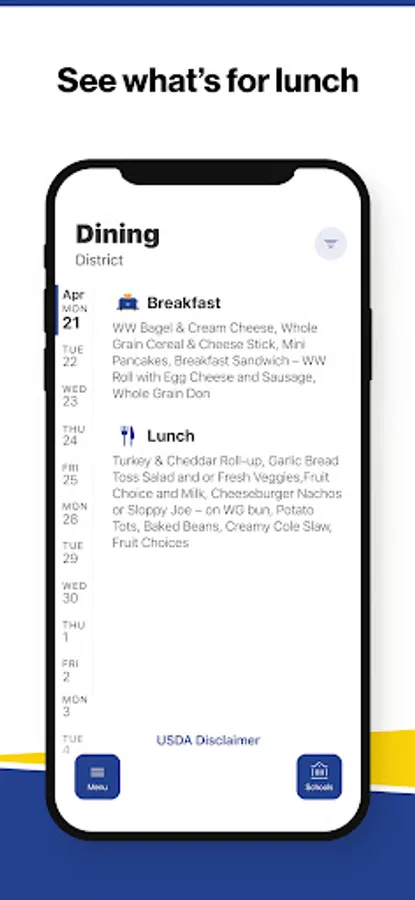Within the dining section, you’ll find an easy to navigate, weekly menu, sorted by day and meal type.
