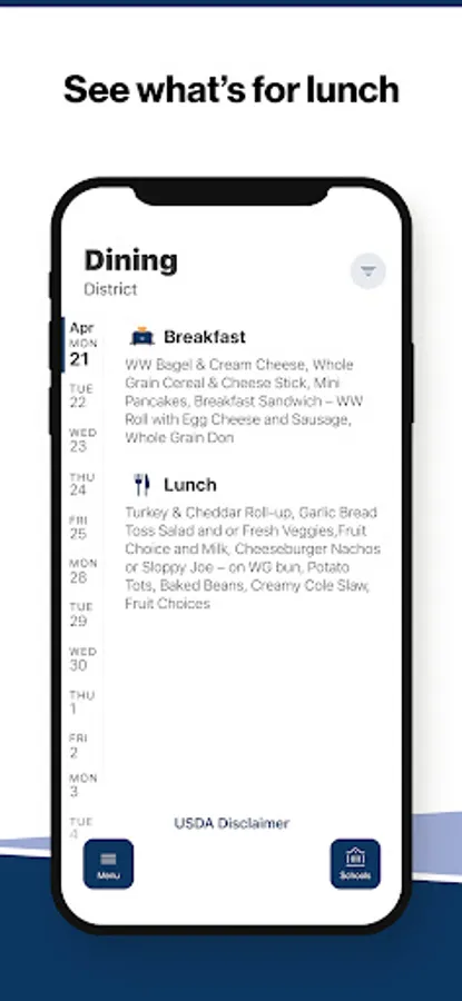 Within the dining section, you’ll find an easy to navigate, weekly menu, sorted by day and meal type.