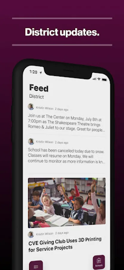 In the Live Feed is where you’ll find updates from the administration about what’s going on in the district right now. Whether that’s celebrating a student’s success, or reminding you about an upcoming deadline.