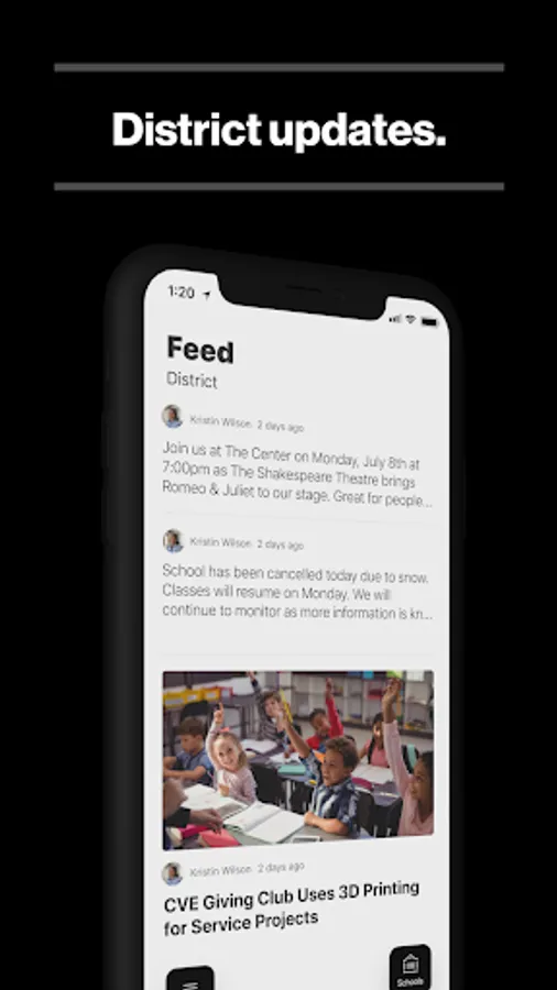 In the Live Feed is where you'll find updates from the administration about what's going on in the district right now. Whether that's celebrating a student's success, or reminding you about an upcoming deadline.