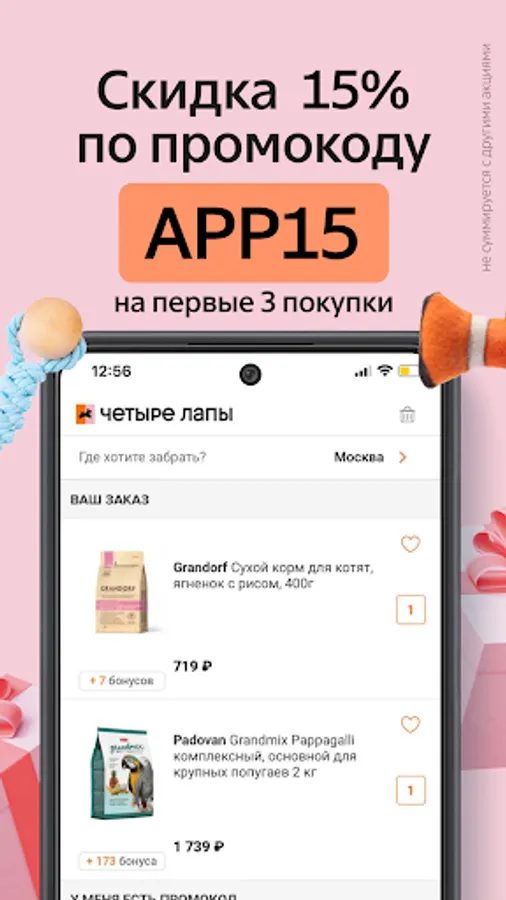 If you encounter an error in the application or have suggestions for improving it, please contact us welcome@4lapy.ru.