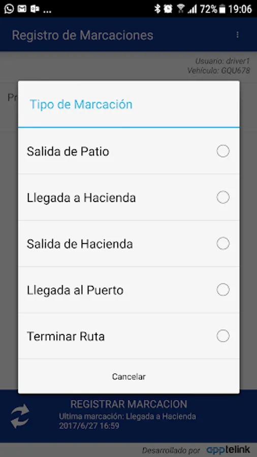 Application which lets you markings of vehicles carrying cargo including location and type of marking