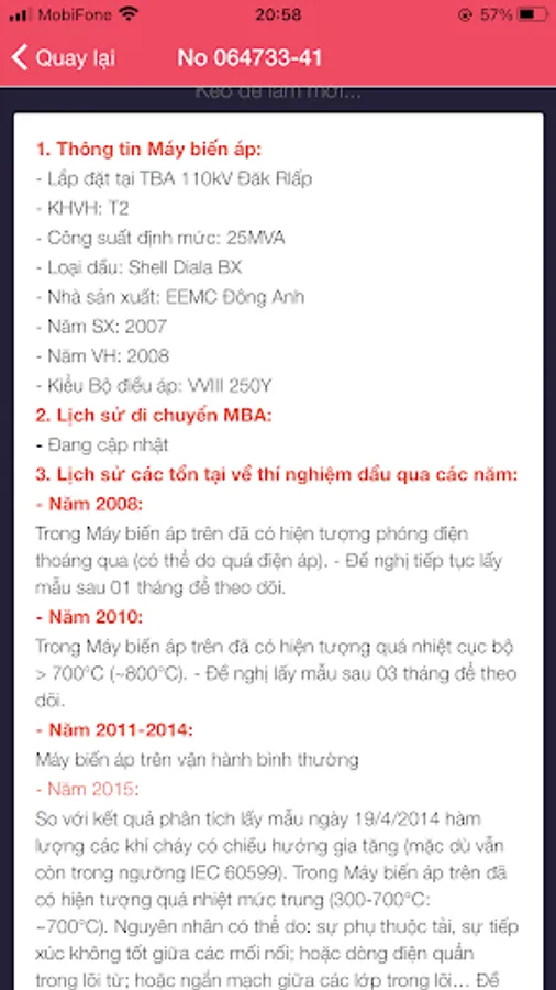 1. To provide users with all information and complete data of EVNCPC 110kV transformers including the following contents: