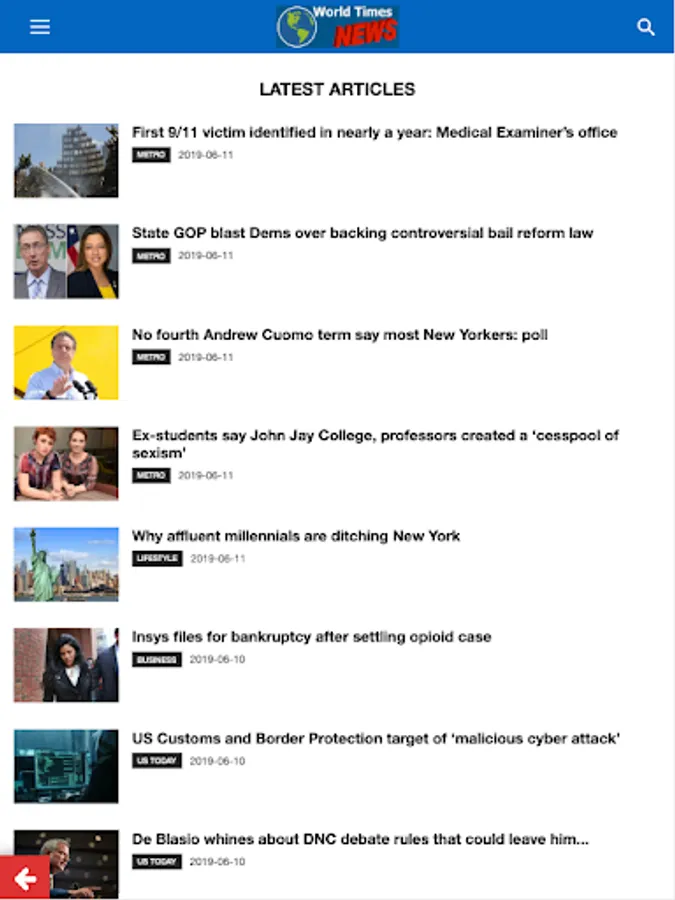 USA Today application includes the latest news: