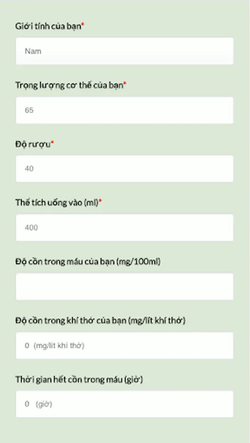 The result in the application is for reference only, it reflects relatively accurately according to the status of Vietnamese people. According to Vietnamese law, you will be administratively sanctioned if you use alcohol, alcohol when traveling and / or your breath has alcohol content. In addition, you may cause a traffic accident if you use alcohol, alcohol when participating in traffic.