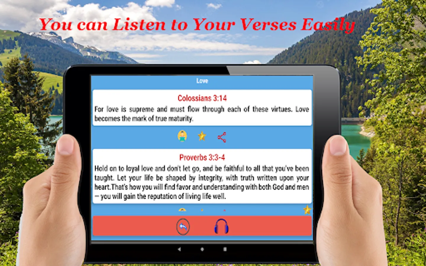 You can select one or several verses of a chapter and mark as a favorite you can also share with your friends the verses in the different social networks. By clicking on the favorite clip, you will see the verses that you marked for quick access.