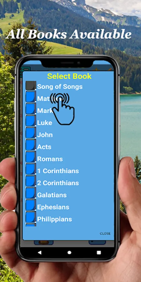 You can click on the screen and the lower part will show the name of the book and the chapter, when pressed, the list of books will appear and in the other the chapters that the selected book has.