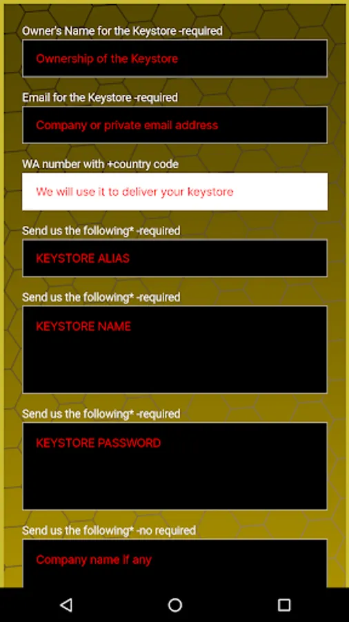 After purchasing the Keystore App Maker service, just follow the instructions to send us the information needed for your project. It's that simple. The keystore will be in your email inbox within hours.