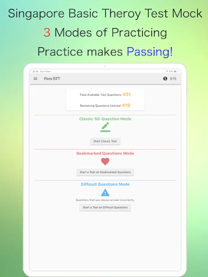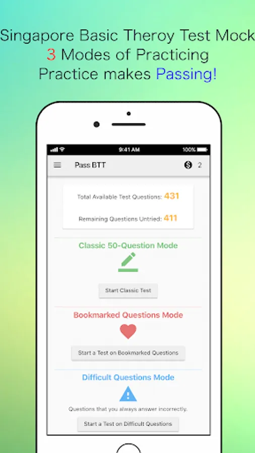 Pass BTT is the perfect App for early preparation or last minute revision. You do not need to read or take any courses about BTT. Simply install this app and get mock test started.