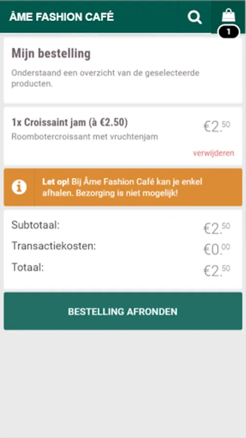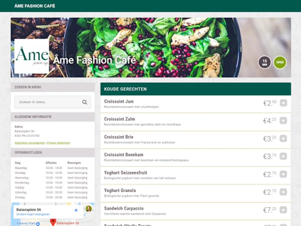 Âme Fashion Café ordering app for Bataviastad. Order your food online here, take care of it and then pick up. Very easy.