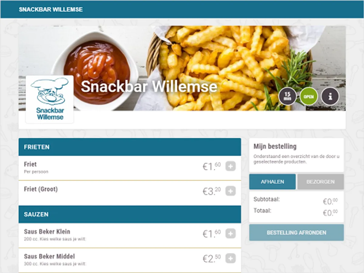 Snackbar Willemse Bestelapp Screenshots