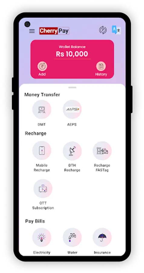CherryPay is one of the most secure platforms for online recharge & bill payment like Mobile and DTH Recharges, DMR and AEPS, Bus Ticket Bookings, Tour Packages, Flight Ticket Bookings, IRCTC agency, OTT subscriptions , financial investment, and other financial services.
