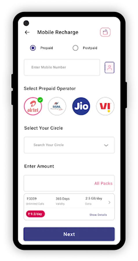 Get a quick and simple online recharge for Jio, Airtel, BSNL, VI, and other prepaid and postpaid services.