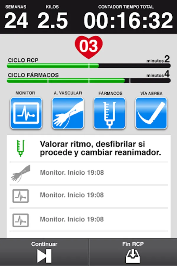 Interactive-Assistant through voices, alarms, text and señaléctica, guides and assists during CPR in the Advanced Adult and Pediatric patient.