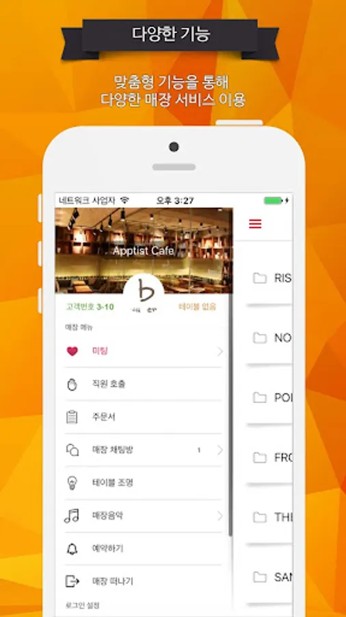 Smart Menu is a customized menu service that allows the customers to order their own menu items on smart phones or tablet PCs, without having to place orders with the employees in various dining venues such as restaurants and cafes.