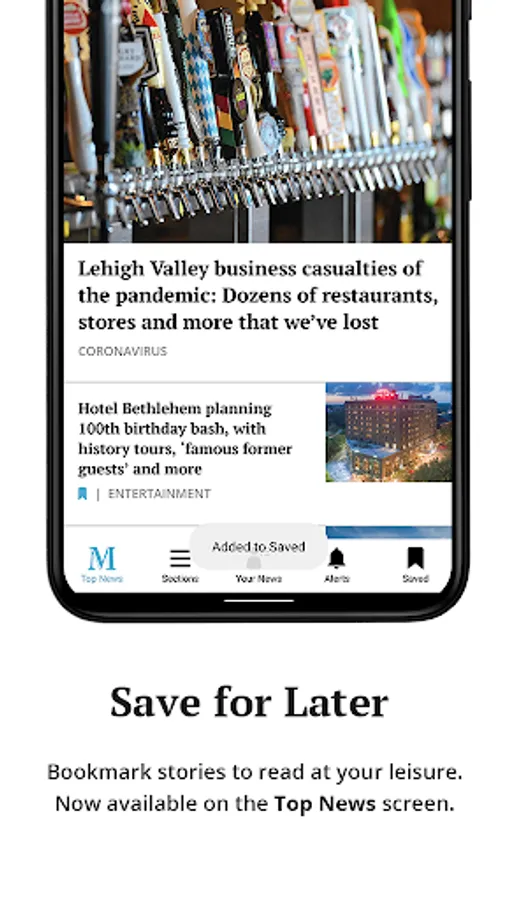 • Save must-read stories, photos and videos for when you have the time to enjoy them