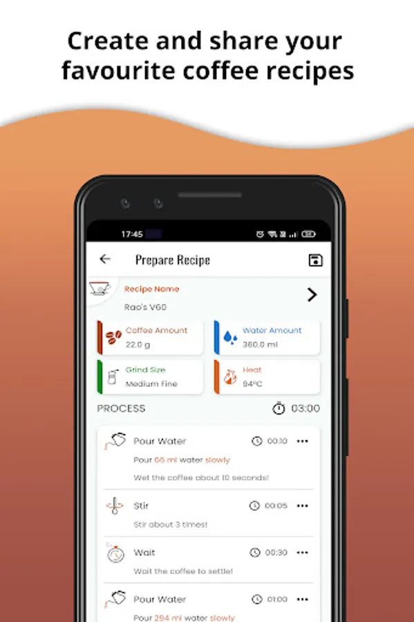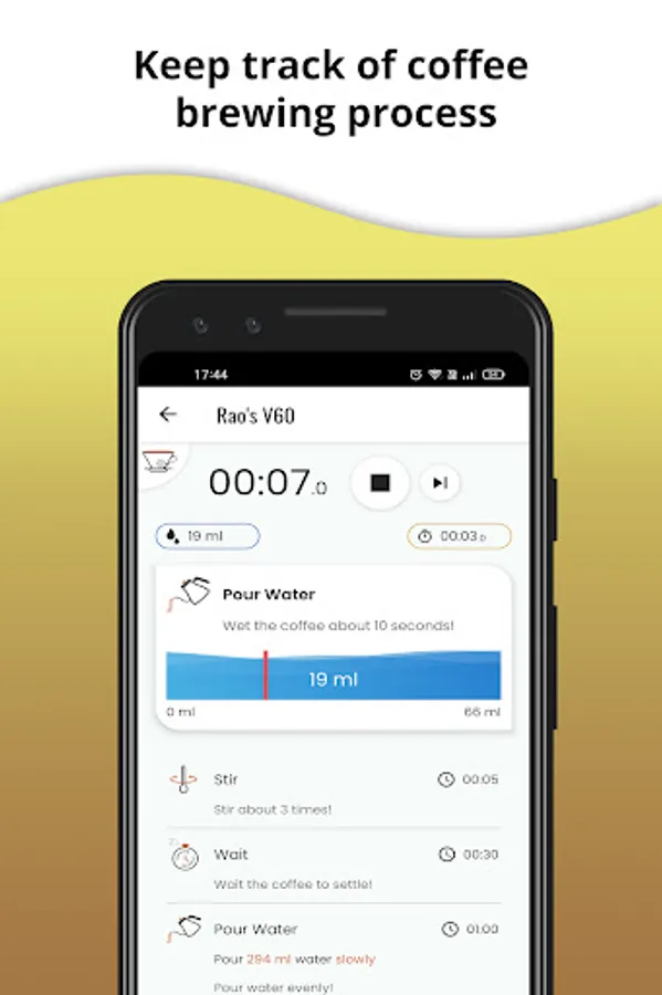 Brew Timer allows you to create your favourite recipes easily and run them while you are making coffee.