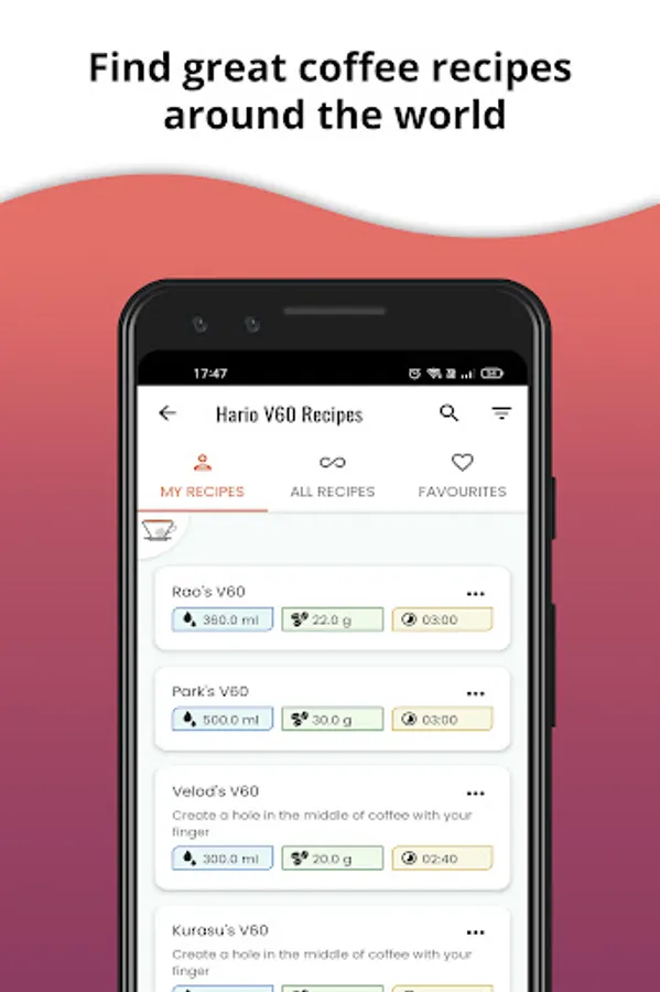 * Thousands of user created coffee recipes with 14 different brewing methods.