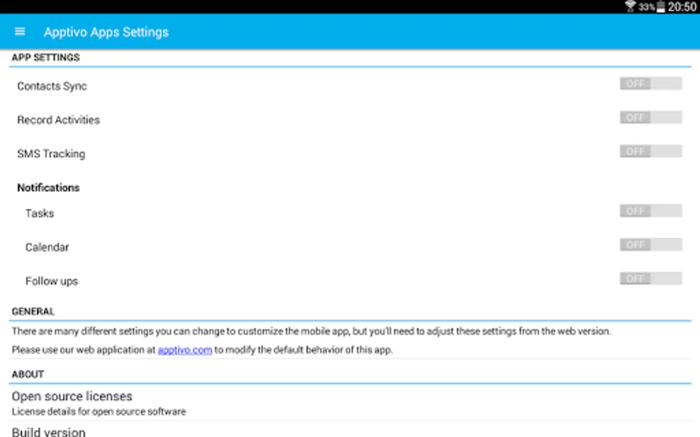 The mobile app is an addition to our web-based Apptivo application (https://www.apptivo.com). The Apptivo app comprises the following tools: