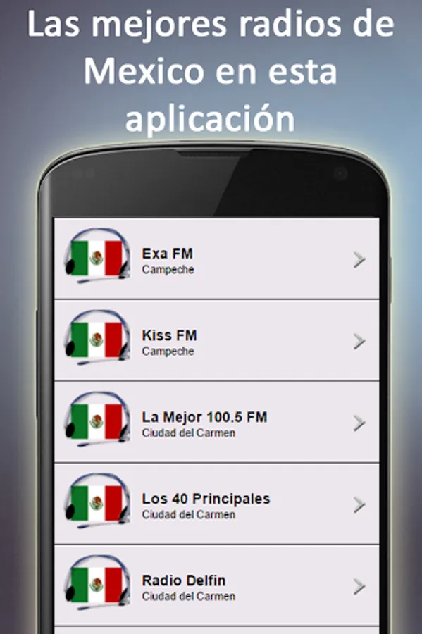 This application Radio Mexico is simple, easy to use and can listen to stations free Mexico, ideal for Mexicans who are overseas and want to know and have about information and music from their land and those who are in Mexican territory to enjoy an application that Mexico has stations in one place and without relying on headphones to tune.