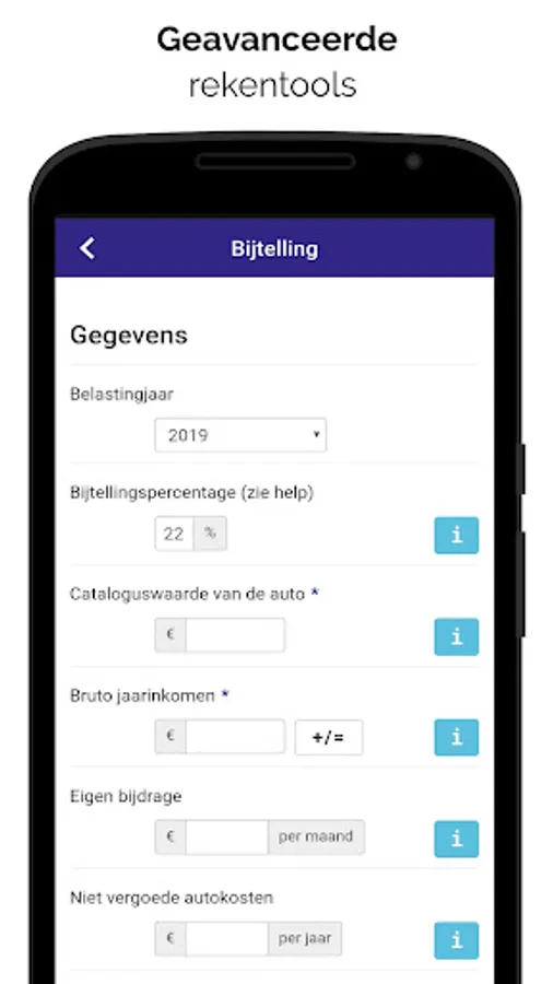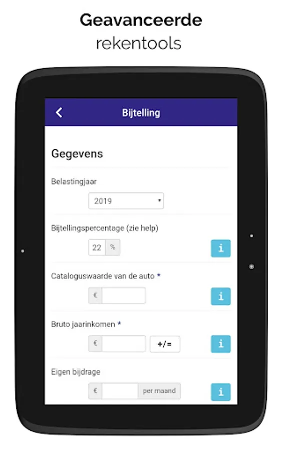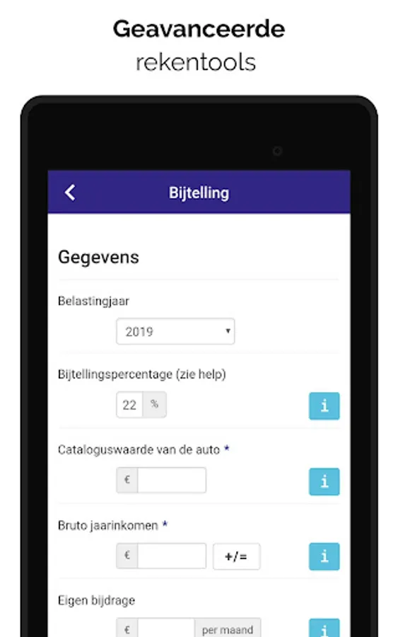 Furthermore, the app includes a handy addition calculator so that you can see the addition of your (future) company car. You will also receive a short update from your accountant via this app every quarter on important news about the car and the ficus. You activate the VAT or wage tax alert so that you receive a 'reminder' in time to submit your tax return. The AccountantApp is constantly being further developed and new features added to make it more informative, useful and practical for you as an entrepreneur.