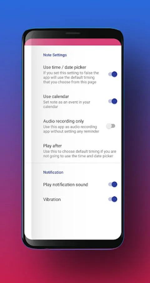 Have you every had a sudden idea and you wanted to record it with your own voice. Or you're in a sitiuation where you want to make a reminder for yourself about something important but you don't have the time or lazy to write it down. For that 10-mins Voice Note app provides you with an easy way to record a voice note and set a remider for yourself after a certine amount of time.