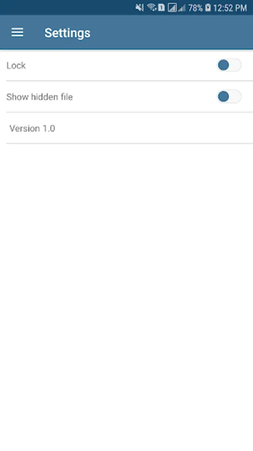 File Manager allows you to copy, move, rename, hide, show hidden, delete or share files. It also lets you set password for your file manager to protect any unauthorized access to your files. It also lets you browse and access your files by category.