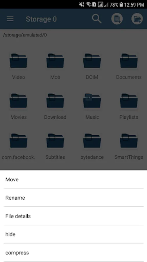 Search Files/Folders or Directories, Select Multiples, Copy/Paste, Cut/Move,Delete, Rename, Compress zip, Show/Hide, Create folder, Show Details, Files and folders operations are easily accessible. File explorer free allows you to set password