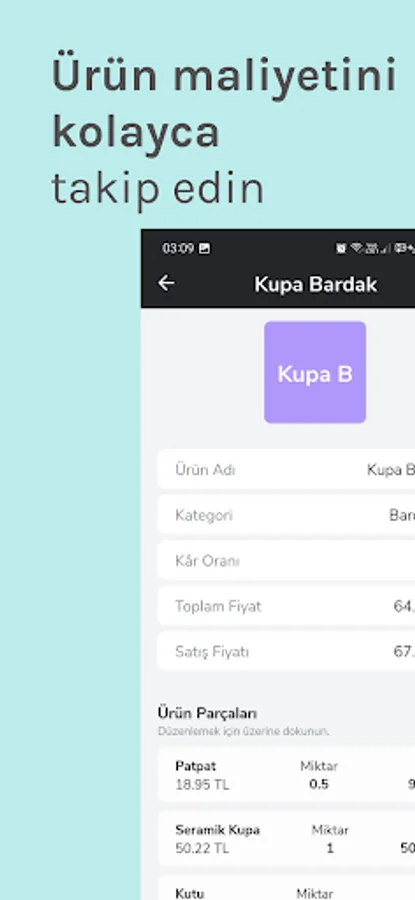 Calculate is a mobile application for tracking the costs of your products. By creating your products, you can easily see how much material you use and how much it costs. This way, you can better control costs and sell your products more efficiently. By creating categories, you can further organize your products and find them quickly.