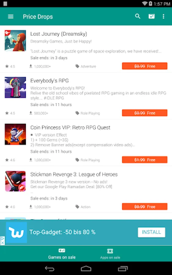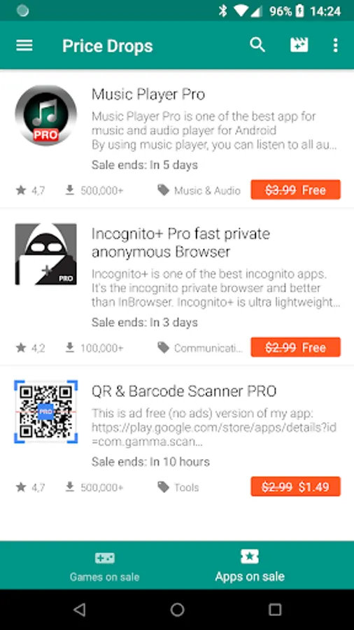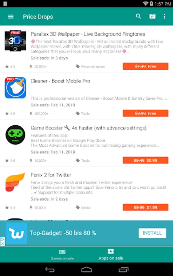 Our Price Drop App helps you find the best paid apps on sale! Save lots of money and download them for free or for a reduced price.