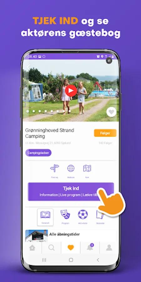 When you arrive at an attraction, festival, campsite or similar in Denmark.