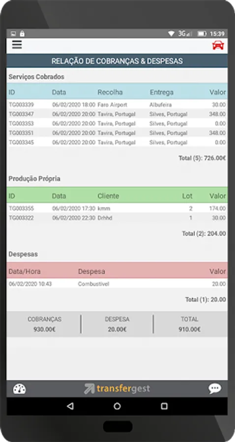 After logging in, the application will connect with the Transfergest management software and thus, your drivers will be able to manage their day to day and increase the efficiency of their operation.
