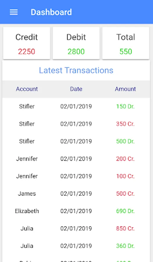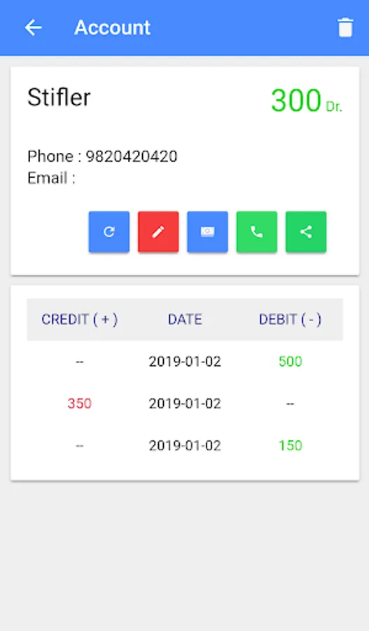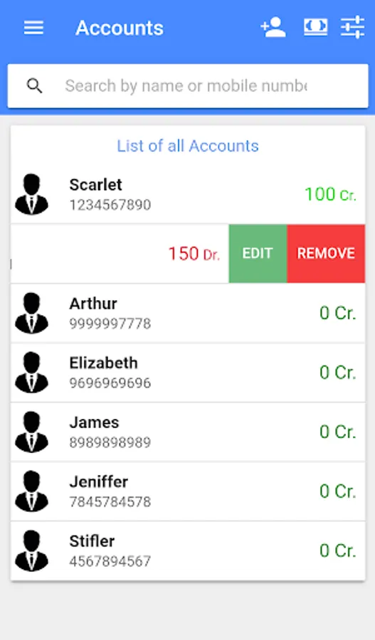 Ledgerbook app is a simplified version of standard account software such as cashbook app which acts as debit / credit, Income/Expense, Payer/Payee accounting ledger book, just add Account and then you can start adding the credit and debit amount which they or you have taken and see the entries.