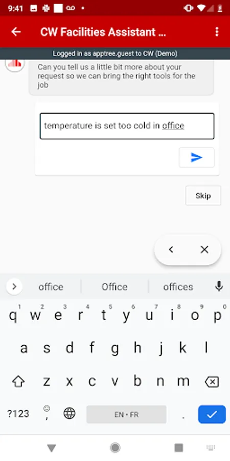 The facility assistant is a mobile application that empowers through interactive conversation, the ability for users to easily report, track and find service requests that have been submitted.