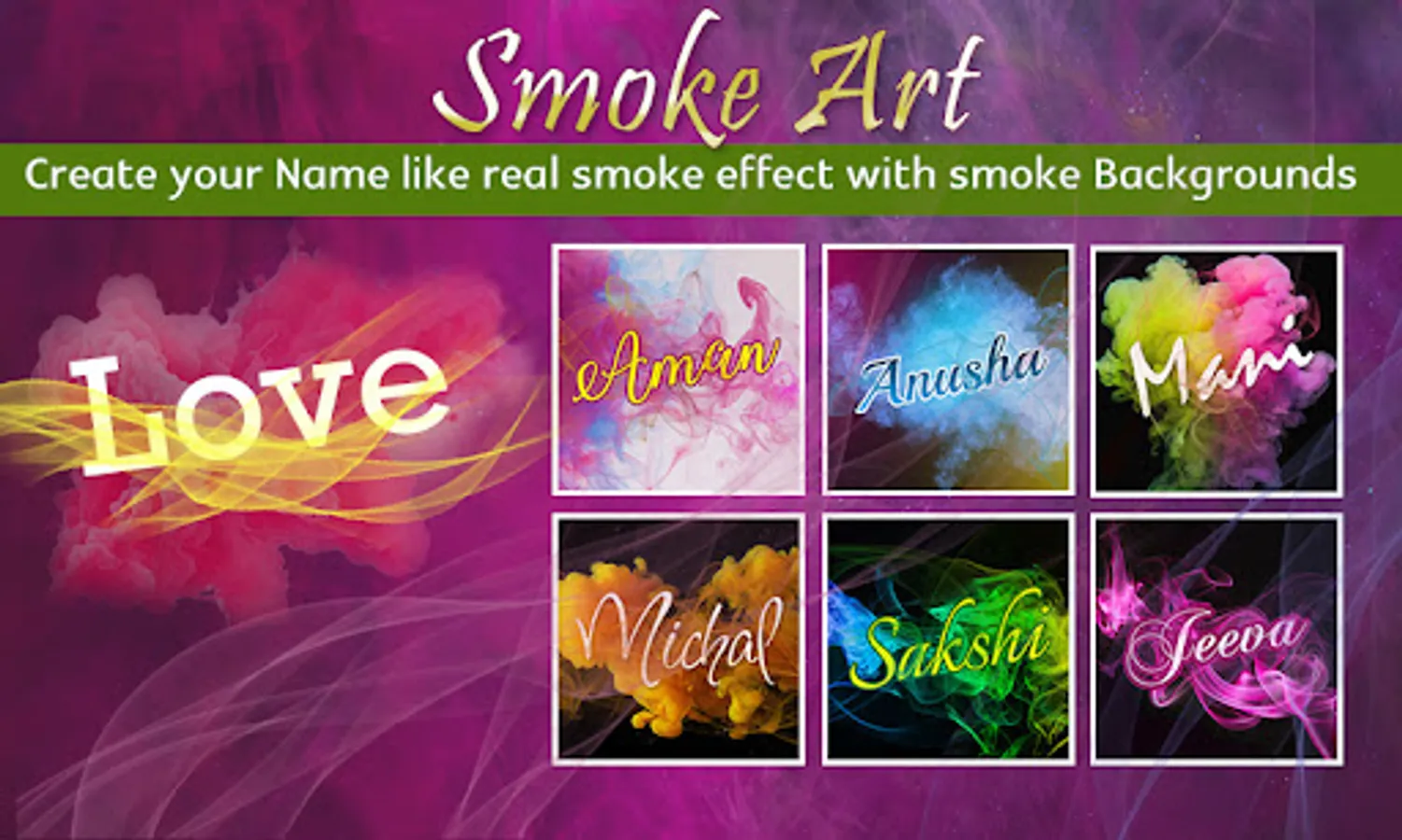 Create beautiful name art styles with a large variety of fonts, attractive backgrounds, beautiful stickers, nice smoke effects, 3d shadow effects, and meaningful emojis.