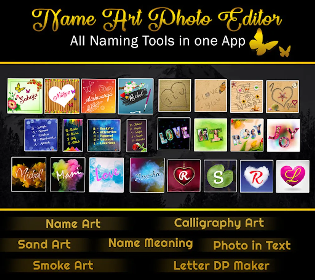 Make your name or family or friend's name unique with "Name Style Art Photo Editor" and Surprise them.