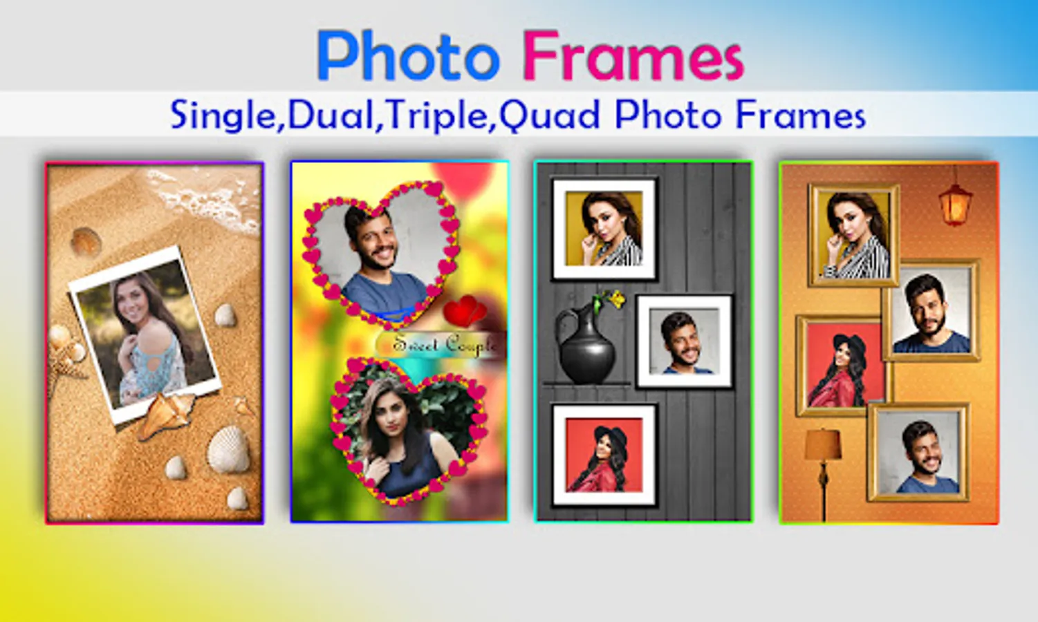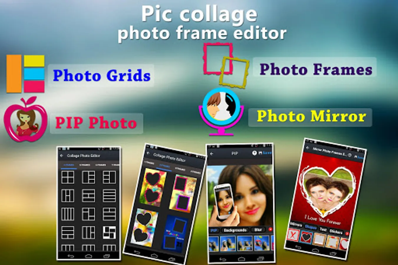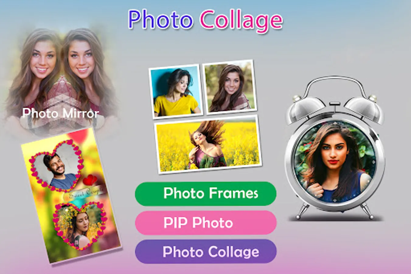 Create awesome photo frames, creative photo collages, Pip frames & mirror photo frames with your own pics in one app!