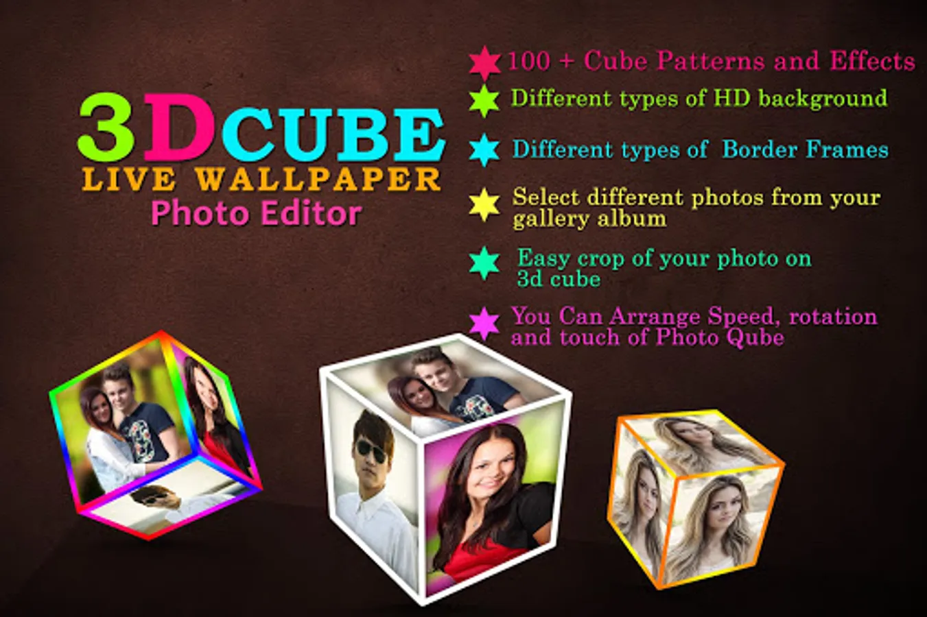 Make your mobile screen beautiful and colorful with 3D Cube Live Wallpaper Photo Editor.