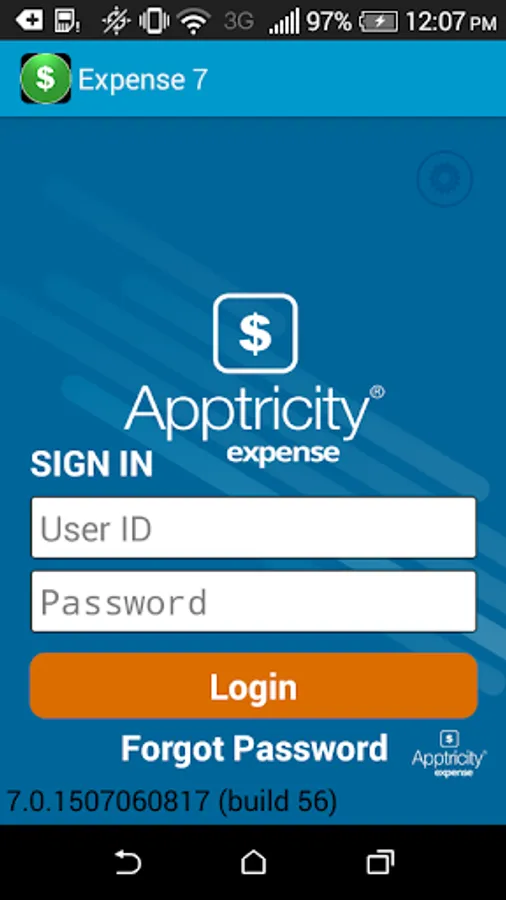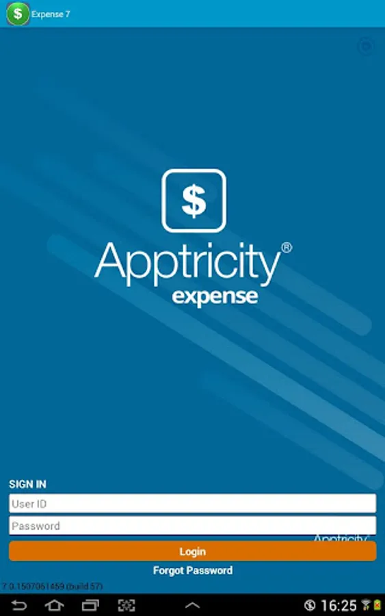 To use this application, a user must have an account for their organization’s Apptricity Expense Management solution. After installation, the user will be prompted for a userid and password.