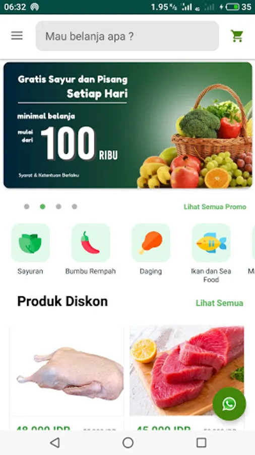 The Griya Sayur application is an online shop that sells vegetables, meat, fish, fruits, frozen food and basic necessities with free shipping which currently serves the Bandung and surrounding areas.