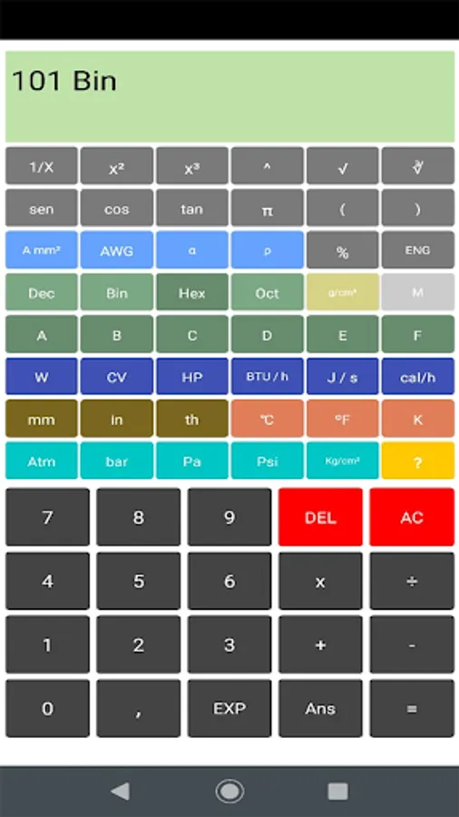 Calculator CONVERCAL: A simple calculator but with features that make it very cool. It has converters, mm2, AWG, temperature coefficient, material resistivity, scientific notation, conversions: DEC, BIN, HEX and OCT, Power: W, CV, HP, BTU, J, CAL, MM, IN, TH, C , F, K, ATM, BAR, PA, PSI, KG / cm2, HELP and the mathematical formulas standard. It is the perfect tool to make an account, convert measures into a recipe or another project. Facilitating learning.