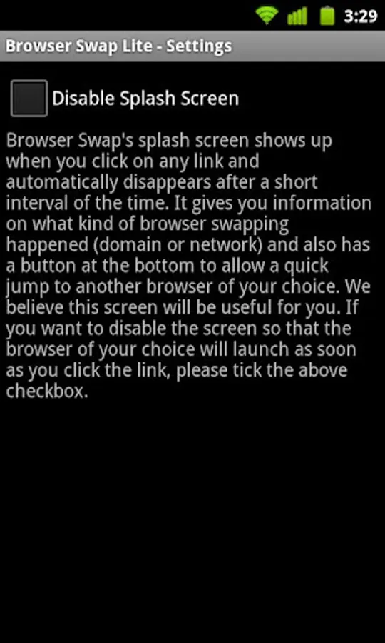 Sure you can just open any browser you want and simply start browsing. But what about those links you click on your Facebook, Twitter, Google+ and other generic widgets? Those links take you straight to your default web browser, regardless of your connection type and speed. With Browser Swap Lite, you can now configure which browser should handle all those clicks, under what connection type (2G/3G/WiFi).