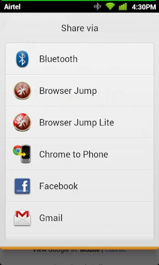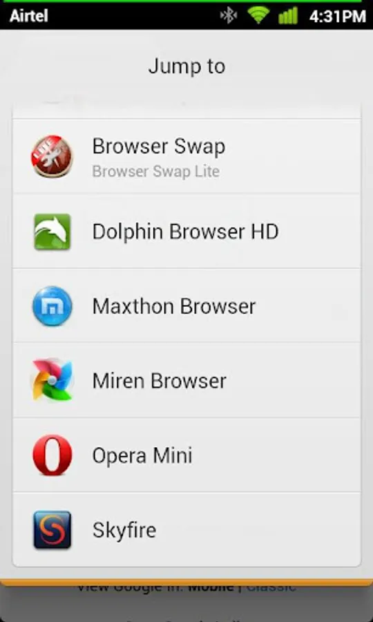 Using Browser Jump you can move a website from one web browser to another, without all the usual copy-pasting of links. Use Share menu in the web browser and select Browser Jump from the list. Now you can see a list of all installed web browsers, from which you can select which browser you want to jump to with the currently opened website. As simple as that. No more copy/pasting and opening/closing.